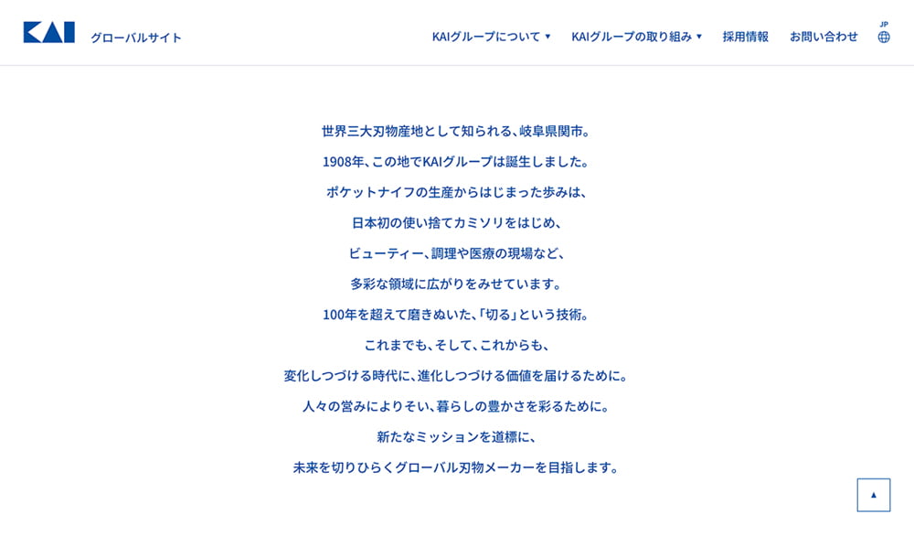 貝印の新しいミッション「切れ味とやさしさ」を掲げるタイミングで、グローバルサイトをリニューアル。